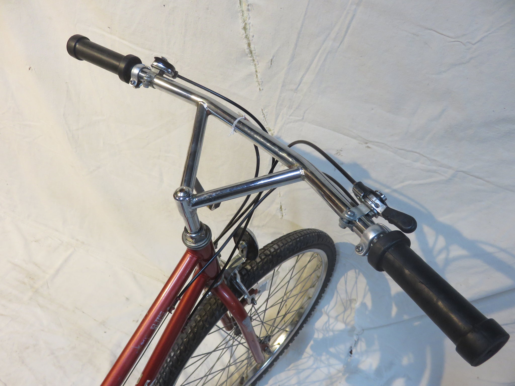 A very common story- this came in in rough shape for a flat fix. And never got picked up. We gave it a bunch of love. Check out the Bars! and Thumbshifters!